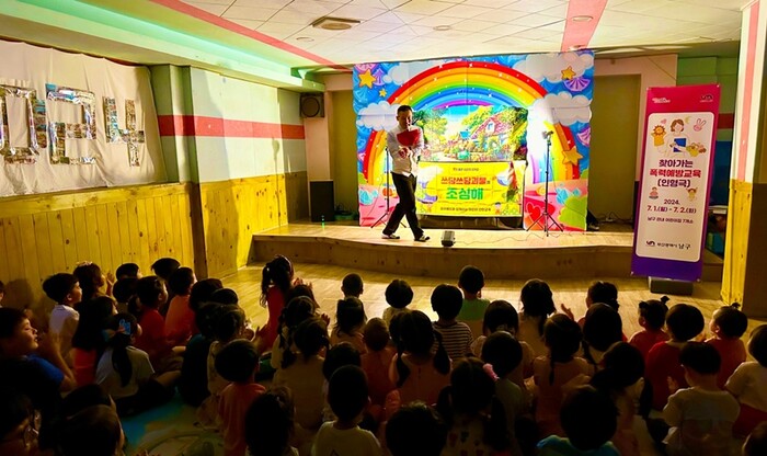 [로컬세계 부산=맹화찬 기자]부산 남구는 7월 1일부터 2일까지 2일간 관내 어린이집 7개소에 “찾아가는 폭력예방 인형극 교육”을 실시했다.