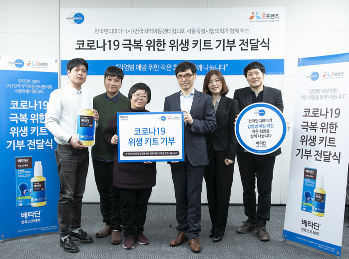 한국먼디파마(유)(대표이사 이명세, 이하 한국먼디파마)는 최근 국내 코로나19 확진자 수의 급격한 증가로 국민적 우려가 커지는 가운데, 신학기를 맞은 아동 및 청소년들을 감염병과 호흡기 질환으로부터 보호하고 개인 위생 관리를 돕기 위해 지난 18일 사단법인 전국지역아동센터협의회 서울특별시지부에 코로나19 극복을 위한 위생 용품 키트를 기부했다고 밝혔다.