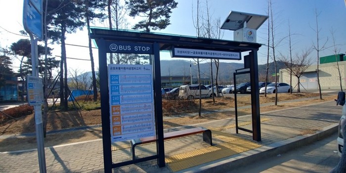 태양광 조명은 지붕에 설치된 태양전지 모듈을 통해 낮에 발생한 전기를 축전지에 저장해 뒀다가 야간에 연속 8시간 이상 유개승강장 주변을 밝게 해준다.