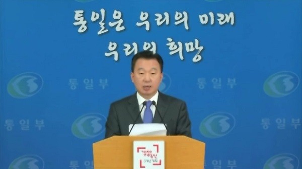 ▲ 정준희 통일부 대변인이 오늘(5일) 오전 정례브리핑을 하고 있다.<사진출처=e-브리핑 화면캡처> |