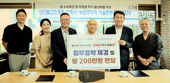 농협 서울본부(본부장 김상수)는 21일 조계종의 총본산 사찰인 조계사에서 우리 쌀 소비촉진 및 아침밥먹기 운동 추진을 위해 대한불교 조계종 조계사와 업무협약을 체결했다.