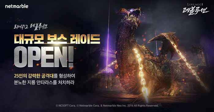 넷마블(대표 권영식, 이승원)은 모바일 MMORPG(다중접속역할수행게임) '리니지2 레볼루션(개발사 넷마블네오)'에 확장팩 핵심 콘텐츠 '안타라스 레이드'를 8월 13일 최초로 오픈한다고 밝혔다.