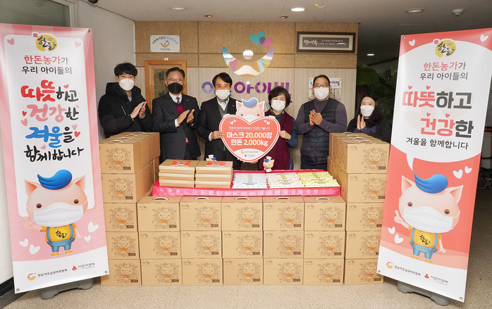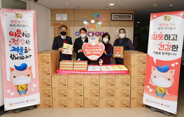 한돈자조금관리위원회(이하 한돈자조금)는 사랑의열매 사회복지공동모금회를 통해 서울시내 아동복지시설에 마스크 2만장과 한돈 2000kg을 전달하고 기념식을 가졌다.