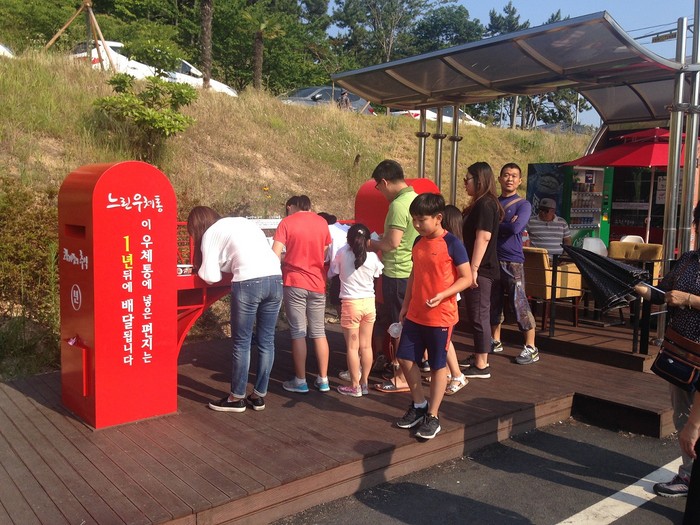 느린우체통은 지난해 3월 콰이강의 다리 모양을 본 따 우체통 두 개를 다리가 연결하는 모양으로 설치했다.