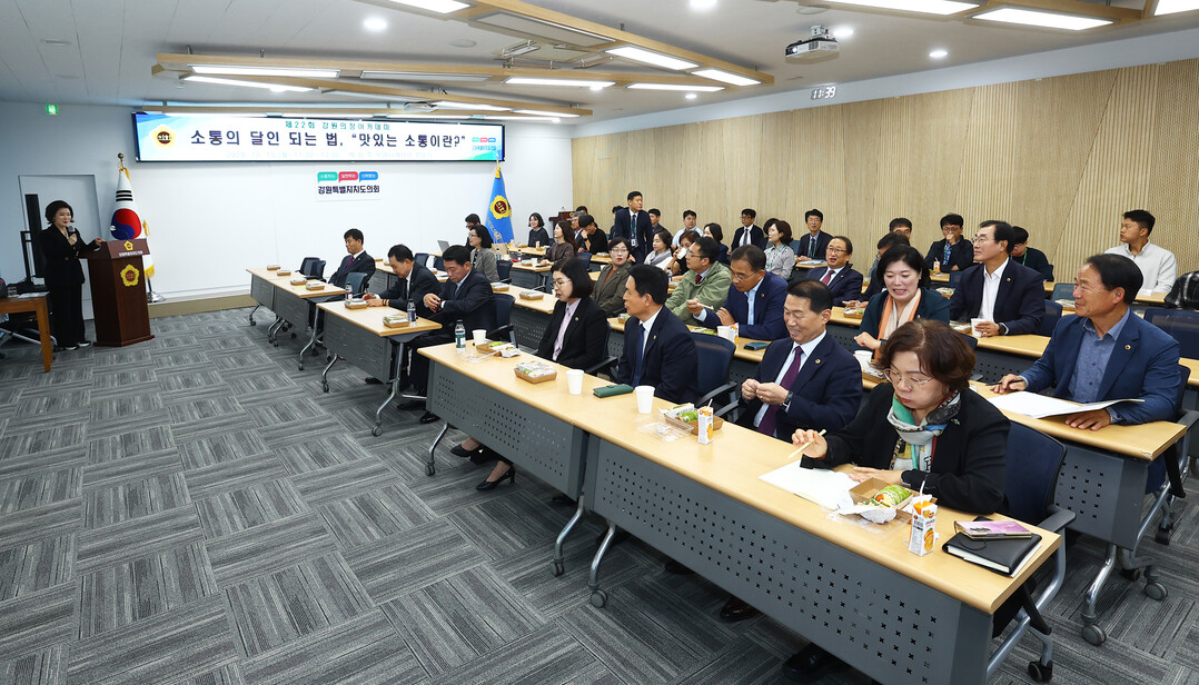 [로컬세계 = 전경해 기자] 강원특별자치도의회는 지난 13일 오전 11시 도의회 세미나실에서 제22회 강원의정아카데미를 개최했다. 이번 아카데미에는 현직 도의원 49명을 비롯해 강원특별자치도민과 의회사무처 직원 등이 참석했다.