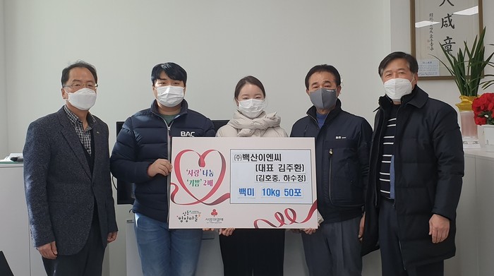 [로컬세계 박세환 기자]대구 수성구 상동에 위치한 ㈜백산이엔씨는 지난 14일 생활의 어려움을 겪고 있는 이웃에게 전달해달라며 쌀 10kg 50포(130만원 상당)를 상동행정복지센터에 기탁했다.