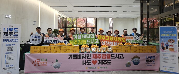 서울농협(본부장 황준구)과 제주농협(본부장 윤재춘)은 29일 농협중앙회 서울본부 로비에서 서울농협 임직원들을 대상으로 고향사랑기부제 동참을 독려하는 '고향사랑기부제 홍보 캠페인 및 제주감귤 나눔행사'를 함께 실시했다.