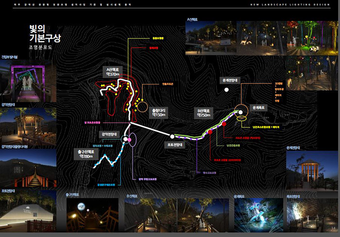 LED 투광등과 동물조명 등을 이용해 밤하늘의 자연과 동물을 등산로 곳곳에 조형해 신비로운 분위기를 조성하고 운계폭포와 고보조명, 영상, 음향 등을 함께 어울려 산 이름인 감악(紺嶽)에 얽힌 스토리를 보다 재미있게 연출한다. 이를 통해 감악산에 대한 이해도를 높이고 야간경관 볼거리와 포토존을 제공해 관광객들의 관심을 이끌어 낼 예정이다.