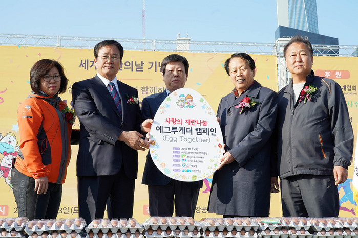 기부 행사는 또 이어졌다. 마라톤대회 현장에서 10월 ‘에그투게더(Egg Together)’ 행사도 함께 열린 것. 에그투게더는 계란자조금이 지난 4월부터 서울시 구로구청, (사)따뜻한마음과 함께 열고 있는 릴레이 계란기부 캠페인으로, 계란을 기부 받아 어려운 이웃들에게 매월 나눈다. 현장에는 이성 구로구청장, 김동옥 따뜻한마음 이사장이 함께 참여했으며, 조인주식회사에서 계란 1000판, 3만개를 기부했다.
