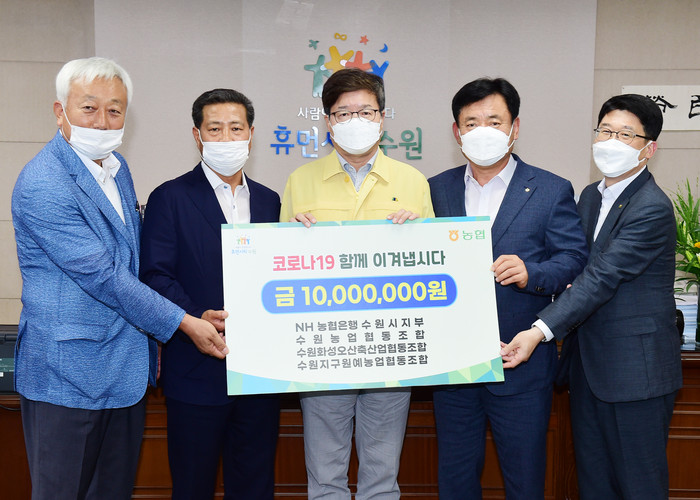 지난 6월 10일에는 노종배 NH농협 수원시지부장, 염규종 수원농협조합장, 이용학 수원원예농협조합장, 장주익 수원축협조합장이 수원시청을 찾아 “코로나19 사태로 어려움을 겪는 취약계층을 위해 써 달라”며 염태영 수원시장에게 성금 1000만 원을 전달했다. 장주익 수원축협조합장은 “홀몸 어르신들에게 전해 달라”며 삼계탕 500인분도 기부했다.