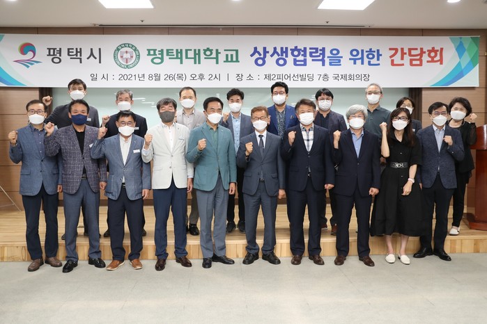 이번 간담회는 시와 평택대학교 간 상호발전 및 지역사회 기여 방안을 논의하고자 마련됐으며 △친환경 미래 모빌리티 혁신 클러스터 조성 △대학생 공익활동 인턴십 △문화공연 제공과 역사자료 집성 △4차 산업혁명 시대 인문학적 소양 육성 등 평택대학교에서 사전에 제안한 지역경제, 청년・취약계층 일자리, 문화예술, 교육 분야의 의제들에 대한 검토내용 및 지역사회 접목을 위한 상호협력 방안이 활발히 논의됐다.