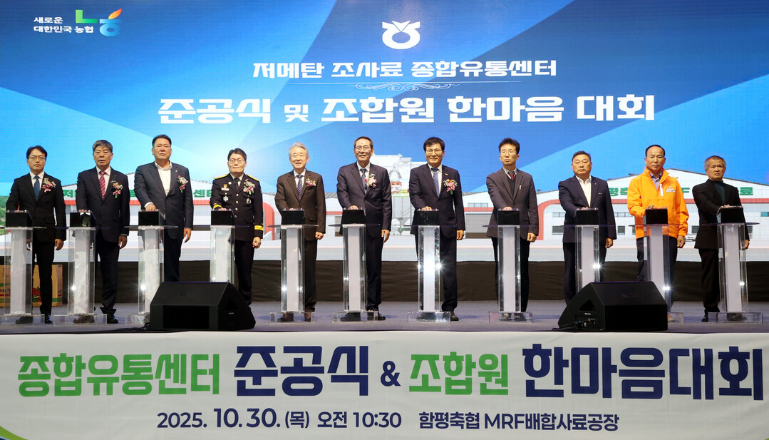 강호동 농협중앙회장은“함평축협의 저메탄조사료유통센터는 탄소중립 시대에 걸 맞는 모범 사례”라며“농협중앙회도 친환경 축산 확대를 위해 지속적인 지원을 아끼지 않겠다”고 전했다.