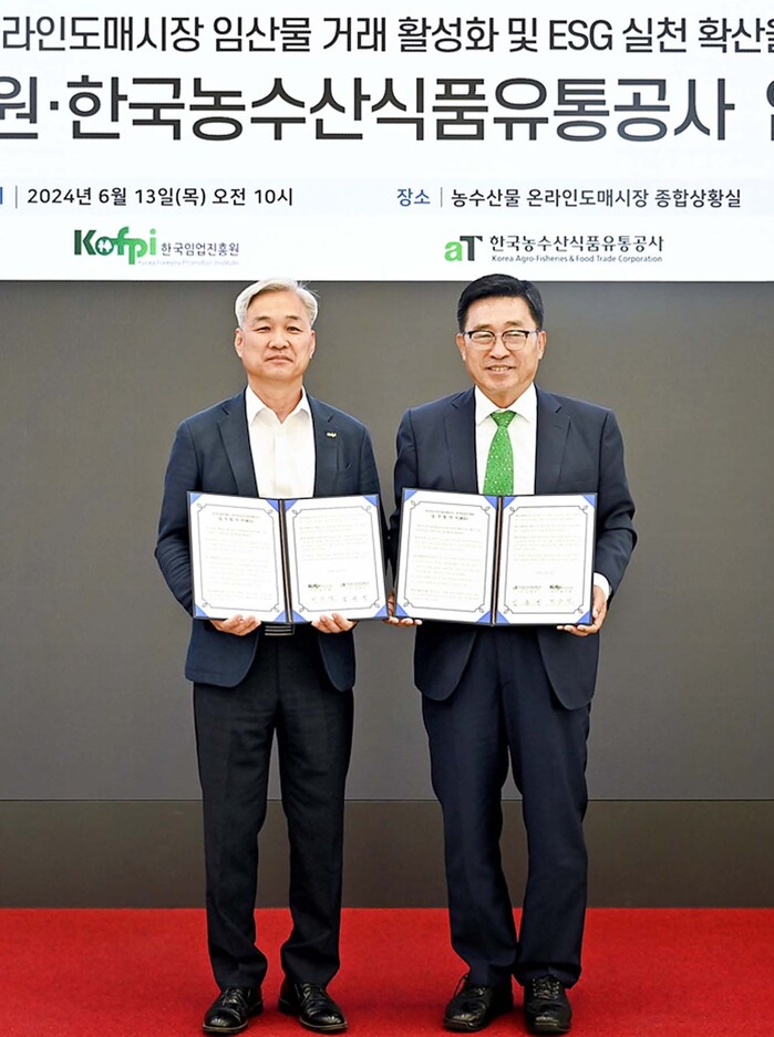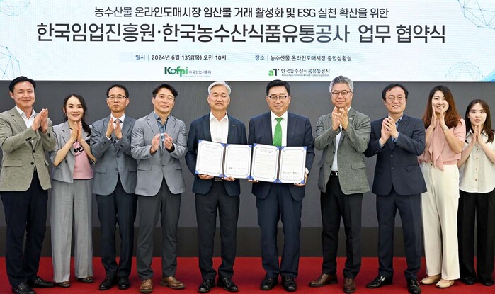 양 기관은 ▲ 온라인도매시장 임산물 거래 활성화 ▲ 임업 발전을 위한 전문 인력·기술·정보 교류 ▲ 한국 임산물 홍보와 해외시장 개척 협력 ▲ 저탄소 식생활 동참과 임업 분야 탄소중립 등 ESG 실천에 적극 협력하기로 했다.