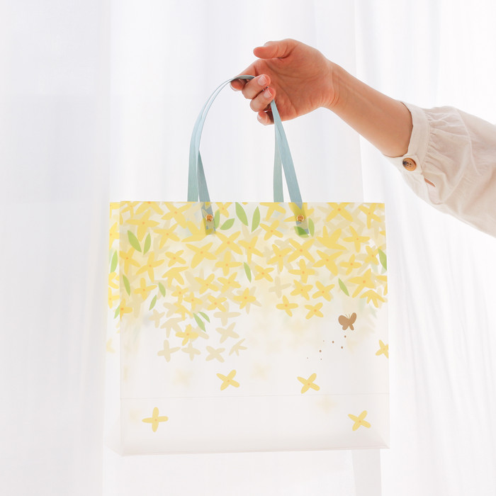 봄나들이에 맞는 수납용품을 찾고 있다면, ‘봄봄 투명 PP 쇼핑백’을 주목할만하다. 일반적인 쇼핑백 사이즈로 투명한 재질에 벚꽃이 밤하늘에 별처럼 수 놓였고, 파스텔톤의 핑크, 블루 손잡이가 전체적인 디자인 톤에 어울린다. 1000원이라는 가격 또한 눈길을 사로잡는다.