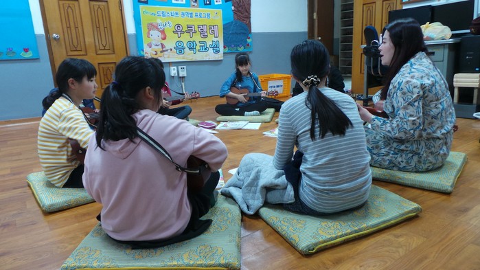 '월항면 우쿠렐레 음악교실'은 사례관리 아동 8명이 성락교회(용각리)에 모여 우쿠렐레 악기를 3년째 배우고 있으며, 올해 처음 시작하는 '용암면 미술교실'은 용암초등학교 교장 선생님의 적극적인 지원으로 드림스타트 사례관리아동 7명이 창제교실에 모여 다양한 미술작품을 만들고 있다.
