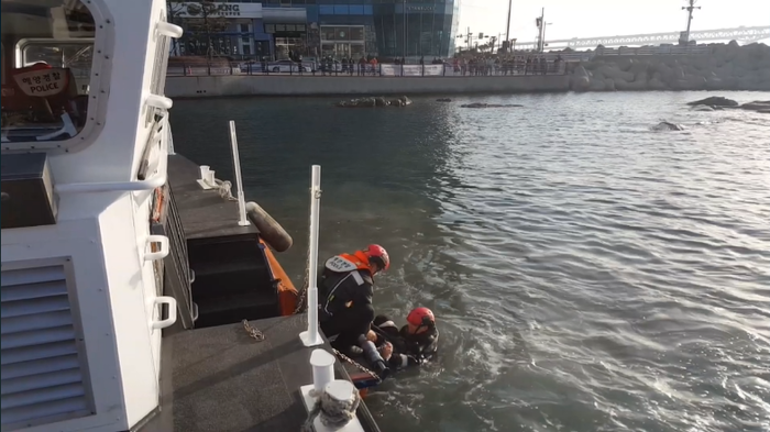 부산해경은 남항파출소를 현장으로 급파, 현장에서 익수자를 발견하고 정훈 경위가 직접 입수해 구조했으며 응급처치 후 연안구조정으로 이송하여 119에 인계했다.