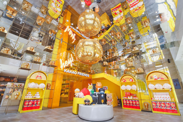 또 미러볼 아래쪽에 ‘아이 러브 상하이(I LOVE SHANG-HAI)’를 주제로 존(zone)을 조성해 카카오프렌즈 캐릭터들을 전시, 고객들을 기분 좋게 맞이할 수 있는 공간으로 꾸몄다. 천장과 벽면에 반사 소재를 사용해 공간이 보다 확장된 듯한 착시 효과를 제공함으로써 환상적인 공간을 구현한 점도 돋보인다.