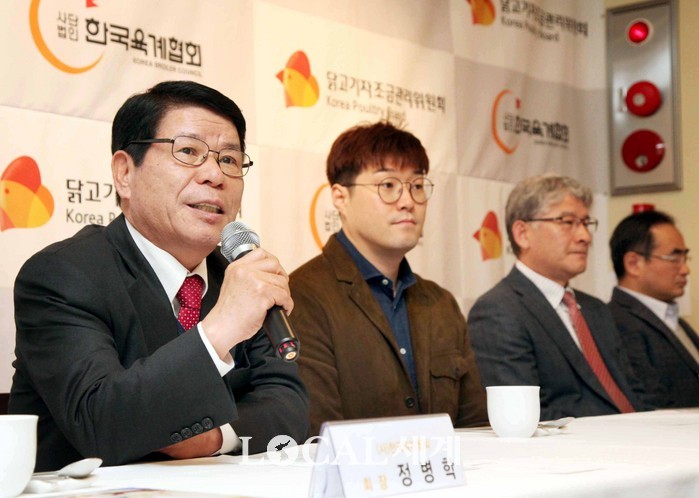 ▲육계협회 정병학 회장(왼쪽 첫 번째)이 오세득 셰프를 홍보대사로 선정한 이유를 밝히고 있다. 라안일 기자. |