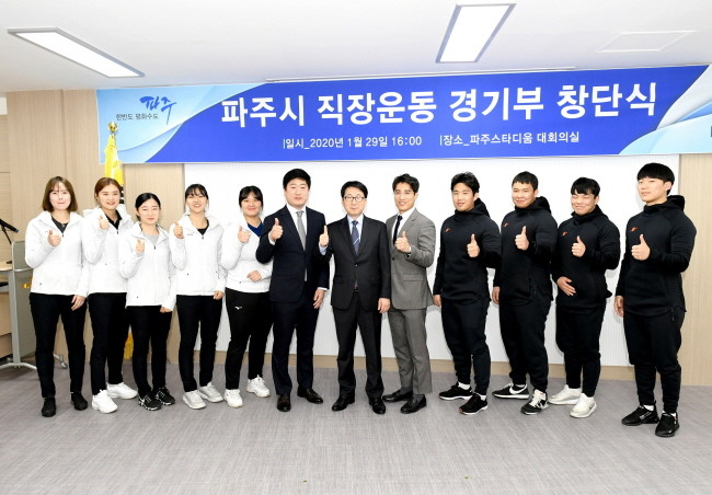 [로컬세계 최아침 기자]경기 파주시(시장 최종환)는 2020년 1월 1일부로 직장운동경기부 레슬링, 탁구팀을 창단하고 지난 29일 파주스타디움 대회의실에서 창단식을 가졌다고 30일 밝혔다.