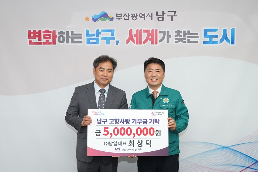 [로컬세계 = 맹화찬 기자]부산 남구는 ㈜남일 최상덕 대표가 500만원을 기부하며 고향사랑기부제 열여섯번째 명예의 전당에 올랐다고 9일 밝혔다.