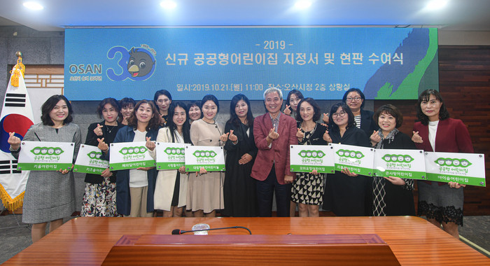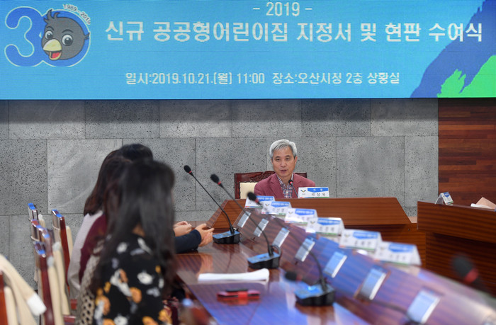 [로컬세계 고용주 기자]경기 오산시(시장 곽상욱)는 21일 오산시청 상황실에서 2019년 공공형어린이집 성과보고 및 신규 선정된 공공형어린이집 9곳에 대한 지정서 수여식을 가졌다고 밝혔다.