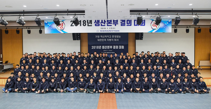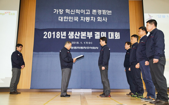지난 17일 쌍용자동차 평택공장에서 열린 결의대회에는 쌍용차 최종식 대표이사, 인력/관리본부장 하광용 부사장, 생산본부장 송승기 상무를 비롯해 생산본부 산하 임직원 200여 명이 참석했으며, 2017년 실적 및 현장개선/생산활성화 활동 우수 사례 공유, 우수사원 및 조직 포상, 2018년 경영현황 및 생산본부 사업계획 설명회, 2018년 목표 달성 결의, 사외강사 특강 등으로 진행됐다.