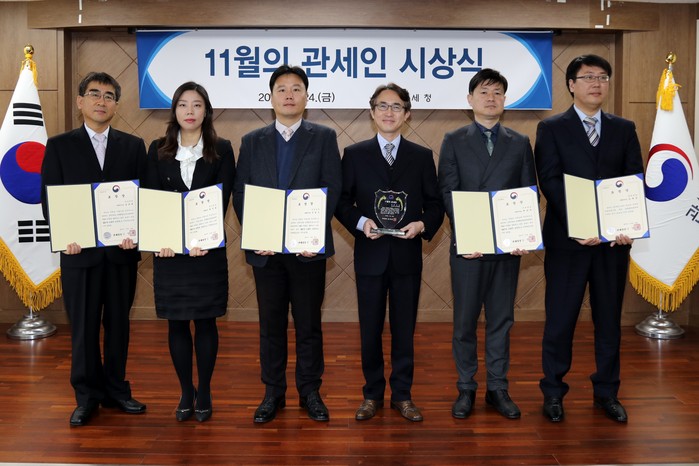 | ▲11월의 관세인 및 유공자가 시상식 후 기념촬영을 하고 있다.(관세청 제공) |