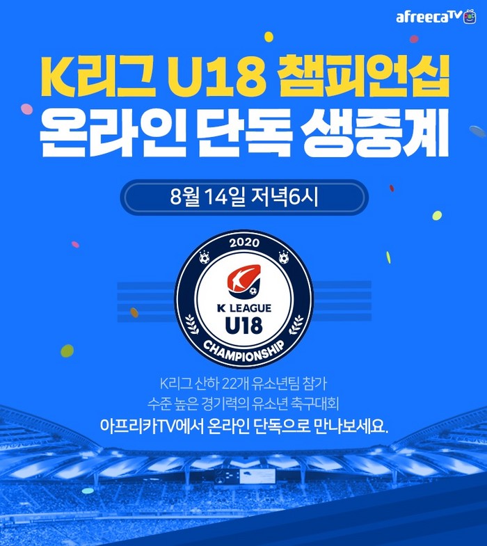 다양한 스포츠 중계 콘텐츠를 선보이고 있는 아프리카TV가 이번엔 K리그 U18 챔피언십 생중계를 선보인다.