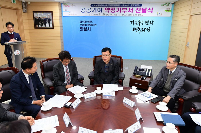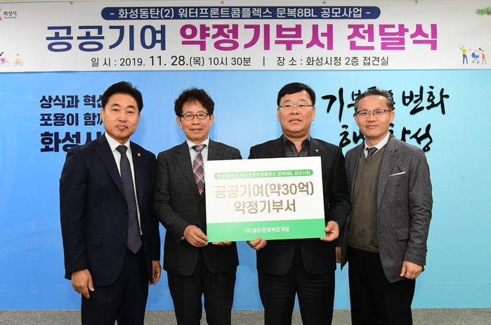 경기 화성시는 28일 경기도와 동탄문화복합개발과 사업개발에 따른 공공기여 약정서 전달식을 진행했다고 밝혔다.