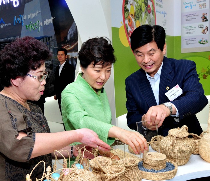박 대통령은 이날 개막식에 참석해 전시장을 살펴봤으며 세종관에 들러 이춘희 시장과 공예가로부터 짚풀공예에 대한 설명을 듣는 등 관심을 표명했다.