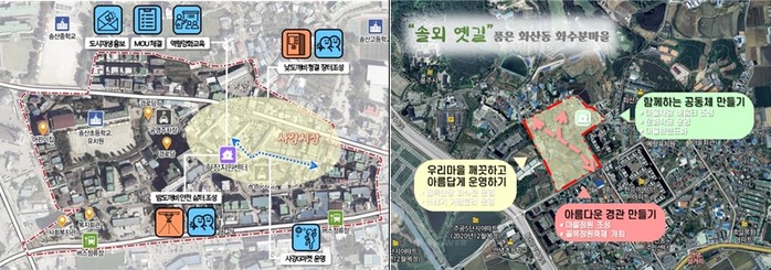 | ▲송산면(왼쪽), 화산동 소규모 도시재생 사업 조성 예시도. |
