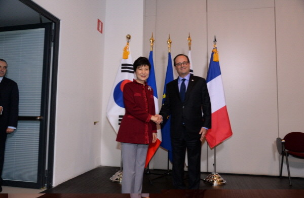 올랑드 대통령의 이번 방한은 지난 2000년 자크 시라크 전 대통령의 방한 이후 프랑스 대통령으로서는 15년 만이며 양국 정상의 회담은 지난 해 10월 ASEM 정상회의 이후 1년여 만이다.