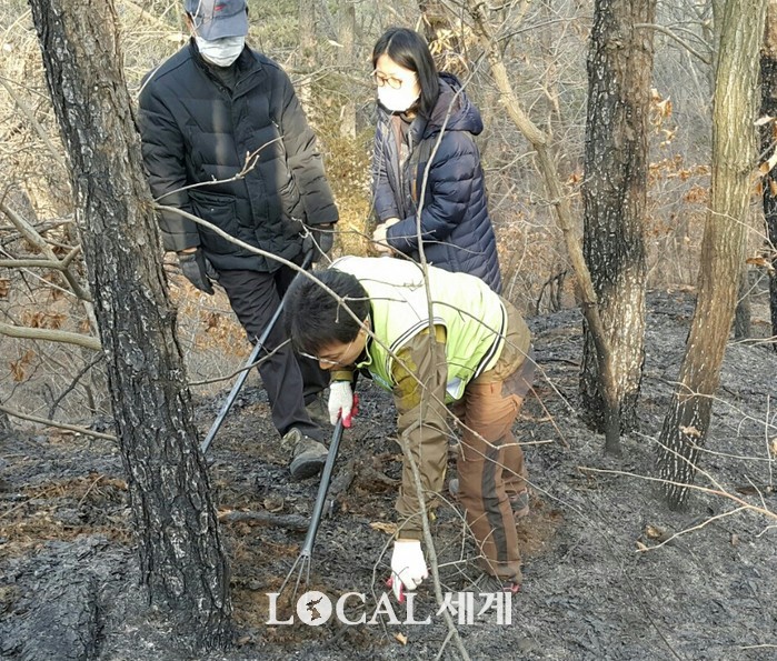 [로컬세계 전승원 기자] 서울시의회 김광수 의원과 수암사랑나눔이 봉사단이 15일 화재가 발생한 불암산 현장을 찾아 잔불정리를 했다.