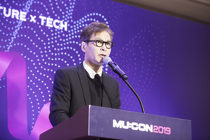 ▲1일 서울 강남구 코엑스에서 개최된 '뮤콘 2019' 콘퍼런스에서 윤상 뮤콘 예술감독이 '비저너리 토크'를 통해 소감을 말하고 있다. |