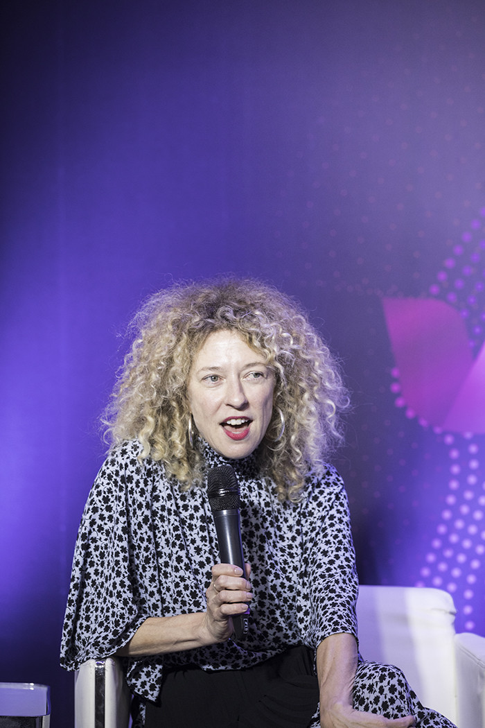 ▲1일 서울 강남구 코엑스에서 개최된 '뮤콘 2019' 콘퍼런스에서 니콜 프란츠 캐피톨 뮤직 그룹 부사장이 제프 벤자민 모더레이터와 함께 기조 강연을 하고 있다. |