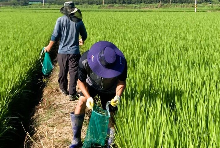 [로컬세계 = 이남규 기자]전남 장성군이 논벼 제초 작업을 위해 풀어 놓았던 왕우렁이 집중 수거 작업을 실시하고 있다.