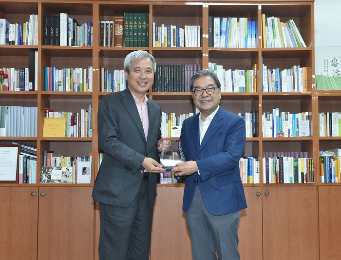 | ▲곽상욱 시장(왼쪽)과 이재정 경기도교육감이 기념촬영을 하고 있다.(오산시 제공) |