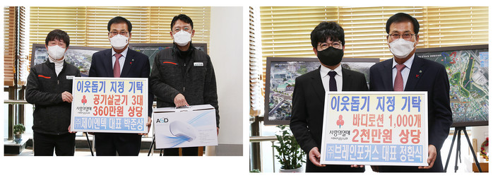 이상익 함평군수는 “경제적으로 어려운 상황임에도 이웃을 위해 사랑을 나눠준 두 기업에게 깊은 감사를 드린다”며 “기탁 받은 물품은 관내 어려운 이웃을 위해 소중히 전달하겠다”고 말했다.