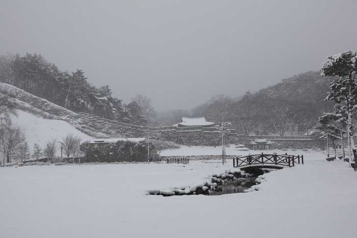 ▲대설경보가 내린 전북 고창읍성 주변이 하얀눈으로 덮여 있다. ©로컬세계