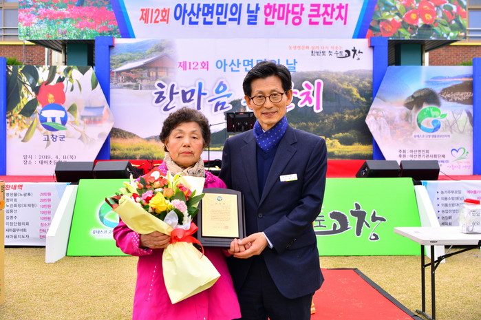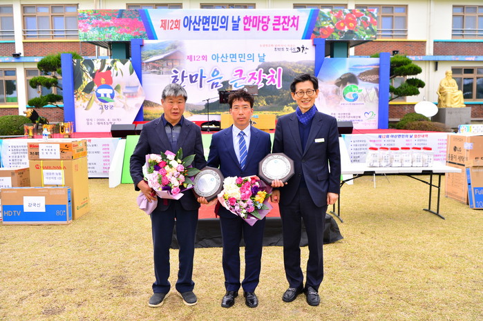 유필상 전 면장이 아산면민의 장에 선정돼 면민의 장증과 부상으로 1냥의 황금메달을, 이종연 전 면장이 명예면민의 장에 선정됐다.