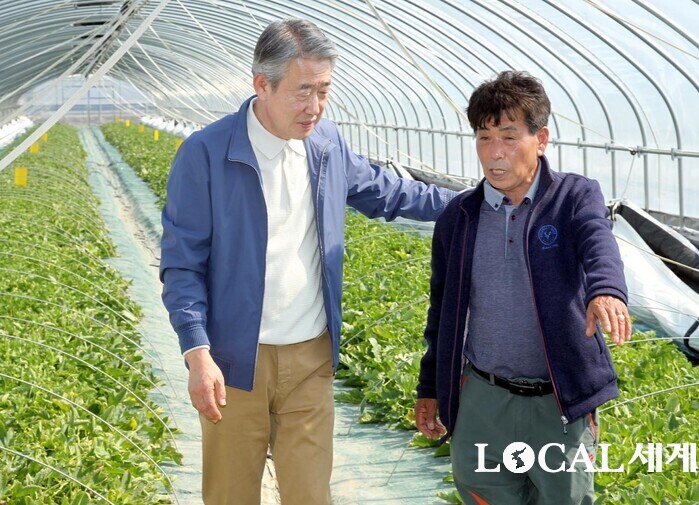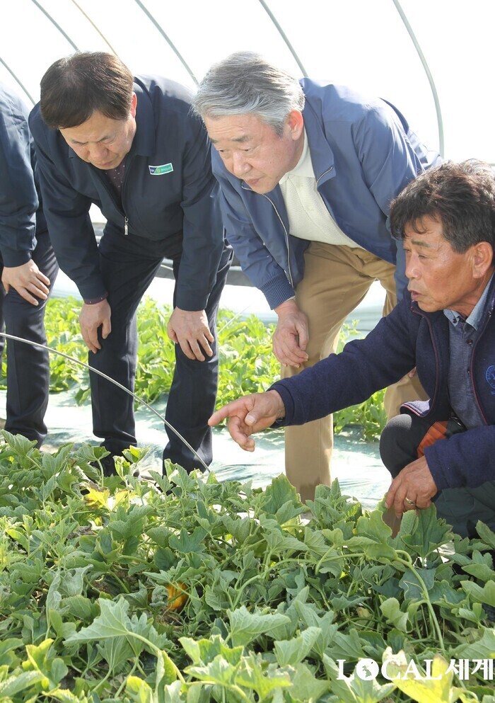 강호동 농협중앙회장은 15일 오후 경북 성주군 참외농가를 방문해 일조량 부족에 따른 생육부진피해현장을 점검하고, 농업인을 위로했다.