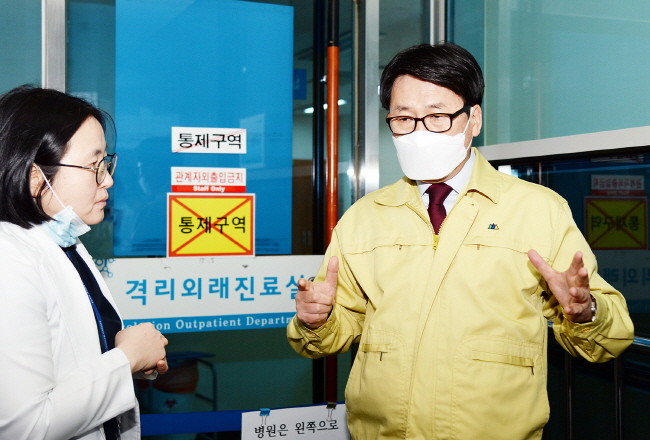 | ▲최종환 시장이 신종코로나 바이러스 예방을 위해 파주병원과 파주보건소을 찾아 현장을 점검했다.(파주시 제공) |