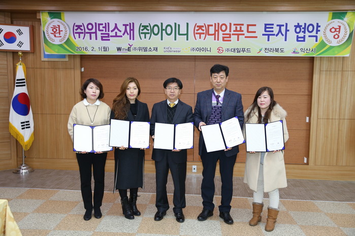 ㈜위델소재는 익산 제3산단 1만 436㎡ 부지에 30억원을, ㈜아이니는 금강동 1980㎡ 부지에 25억원을, ㈜대일푸드는 현재 인화동에 있는 육가공 공장을 익산 제4산단 9900㎡ 부지로 확장 이전할 예정이다. 3개 기업의 투자가 성공적으로 마무리될 경우 90여개의 신규 일자리가 마련될 것으로 보인다.