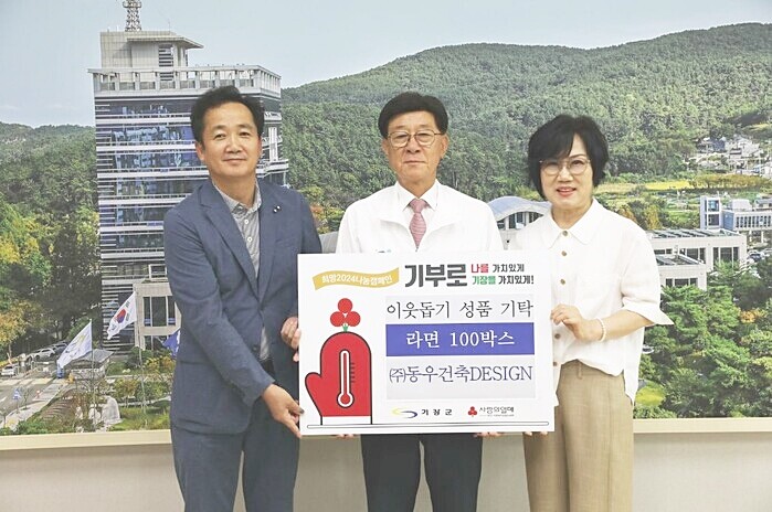 [로컬세계 부산=맹화찬 기자]부산 기장군은 지난 3일 ㈜동우건축DESIGN이 관내 어려운 이웃을 위해 전달해 달라며 라면 100박스를 기탁했다고 4일 밝혔다.