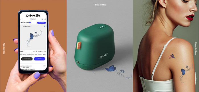 ‘Printly’는 LG생활건강 색조연구소에서 자체 개발한 피부 화장용 비건 잉크가 사용되어 남녀노소 누구나 안심하게 사용할 수 있고, 피부와 기기 노즐 간격을 최적화하여 잉크의 안정적인 분사로 정교한 도안까지 프린트가 가능하다. 또한 피부 표면을 보다 섬세하게 감지하는 옵티컬 센서를 적용해 실제 타투의 감성을 그대로 경험할 수 있다.