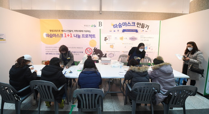 경기 오산시는 코로나19 확산을 막고 마스크 품귀 현상을 해소하기 위해 ‘따숨마스크 1배움 + 1나눔’ 프로젝트를 오는 27일까지 시청 1층 로비에서 진행한다고 14일 밝혔다.