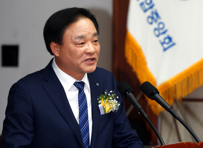 [로컬세계 박민 기자]26일 서울 송파구 수협 본부청사에서 열린 수협중앙회장 이취임식에서 새롭게 취임한 25대 임준택 수협회장이 취임사를 하고 있다.