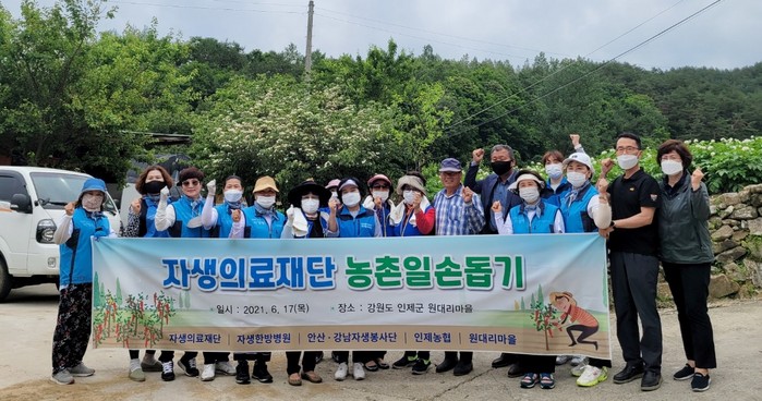 자생의료재단(이사장 박병모)은 17일 강원도 인제군 안삽재농원에서 농촌일손돕기 봉사활동을 펼쳤다고 밝혔다.