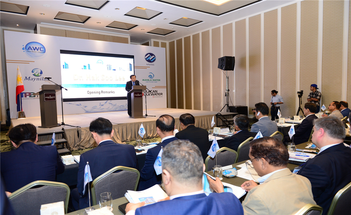 | ▲지난 3월 14일 필리핀 개최 아시아물위원회 3차 총회 및 이사회에서 발표중인 이학수 수자원공사 사장.(수자원공사 제공) |