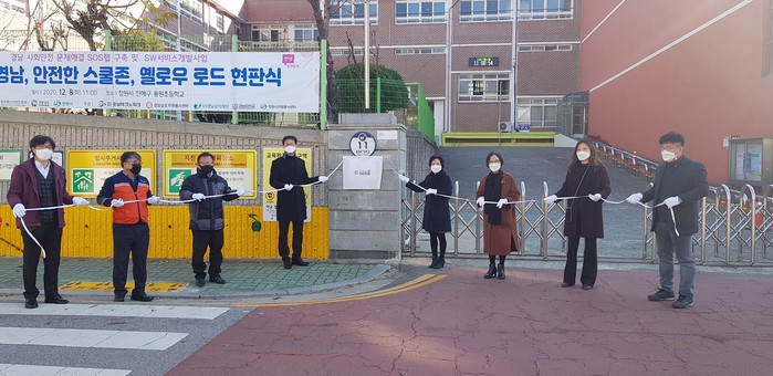 [로컬세계 한용대 기자]경남 창원시(시장 허성무)는 8일 ‘SOS랩 구축 및 SW서비스 개발사업’의 시범운영지역으로 선정된 창원 용원초등학교에서 안전한 스쿨존 만들기를 위한 ‘옐로로드’ 조성완료를 기념하는 현판식을 개최했다고 밝혔다.